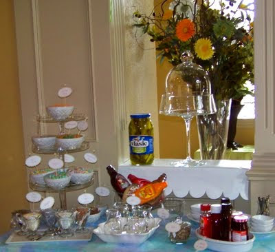 Since everything had to be hidden and I wasn't sure how long we'd have for the set up, some of the pictures were taken days before the event so that I could re-assemble the table quickly. Then after everything was set up, the day simply FLEW by getting the rest of the food for dinner ready.